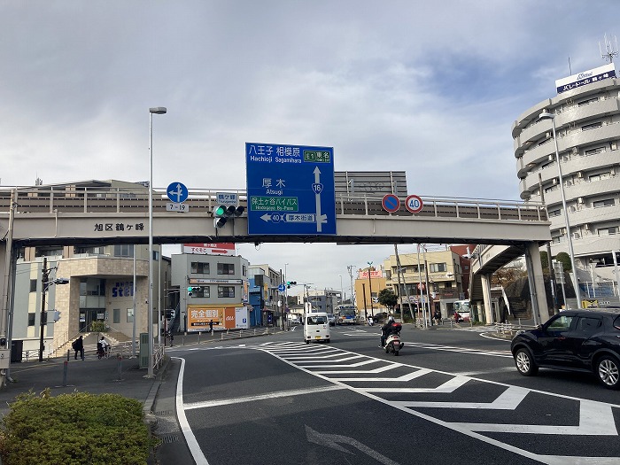 鶴ヶ峰交差点で八王子街道(16号)と厚木街道(県道40号)に分かれます。