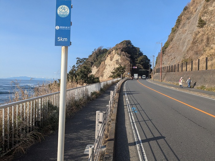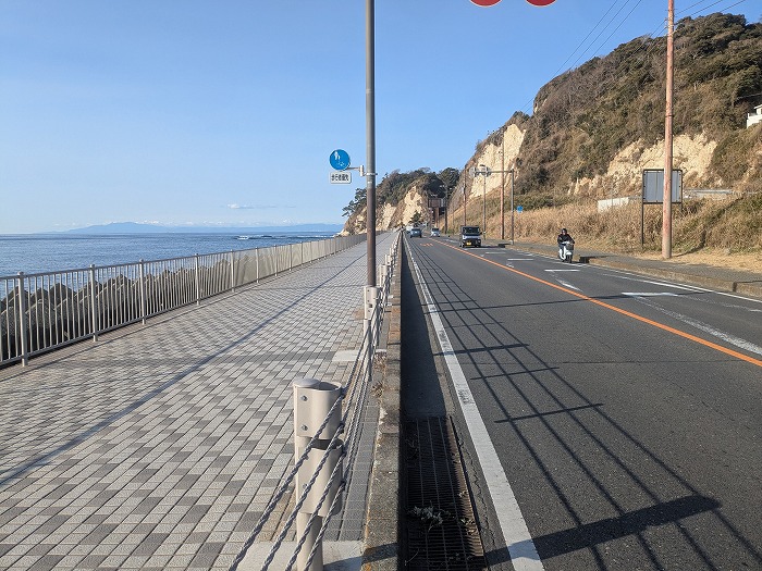 由比ヶ浜を後に江ノ島方面に進んで行くと前方に小さな山が見えてきます。