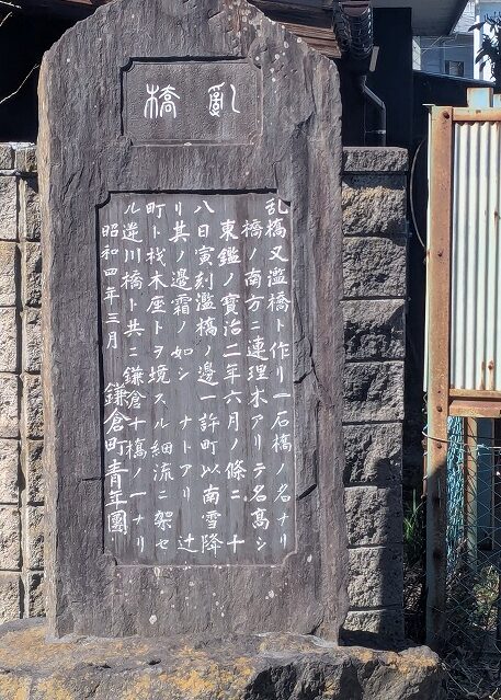 明治期には材木座村と合併して乱橋材木座村となり、昭和14年の鎌倉市制施行後は「鎌倉市乱橋材木座」、戦後の住居表示制度で「乱橋」の地名は消滅しました。