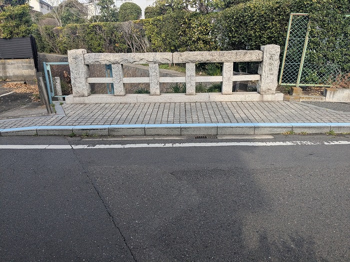 極楽寺駅から稲村ヶ崎方面へ歩く途中、小さな橋の脇に石碑が立っています。