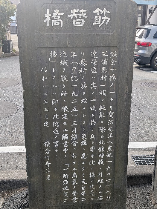 『吾妻鏡』にも「筋違橋」の名が登場しており、鎌倉十橋のうち『吾妻鏡』に明記されているのは「筋違橋」と「乱橋」の二つのみという歴史的価値の高い橋です。