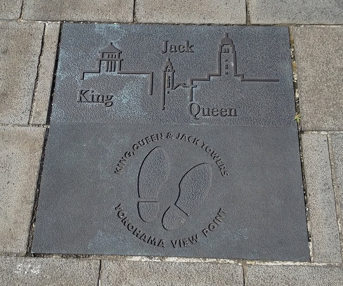 ・神奈川県庁、開港記念館、横浜税関といった横浜三塔が見える地点がある